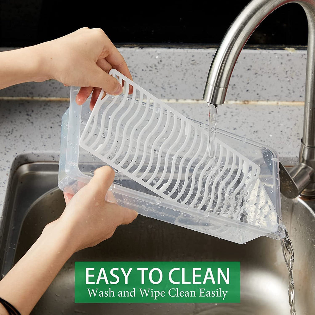 Fridge organizers storage box set comes with a drain lid below which drains the moisture from the food which helps in keeping the fruits & vegetables fresh all over the long durations; this fridge storage box is a blessing for urban modern smaller kitchens or where there are space constraints