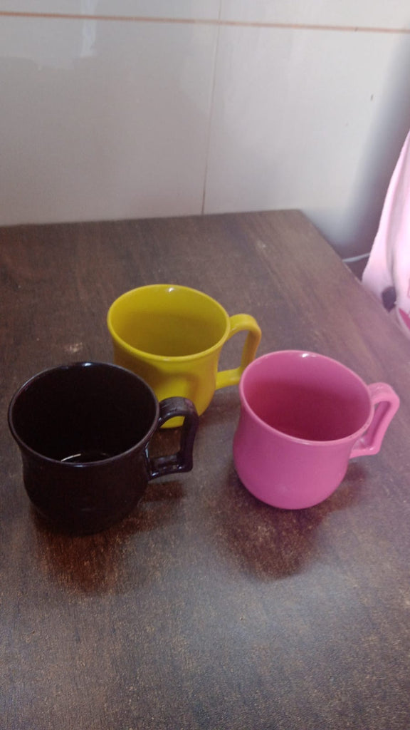 Premium Plastic Coffee / Tea Cups Unbreakable Coffee Mug Plastic with Handle, Plastic Mug Dishwasher Safe Reusable Cup Mug Lightweight Camping Coffee Mugs for Tea Milk Water Juice Tea (1 Pc / Loose / Mix Color)